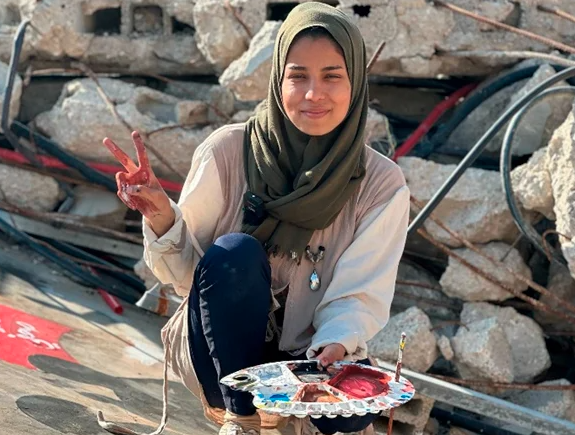 Fotografía: Rabie Noquiera. Registro de la artista visual palestina Amal Abu Al-Sabah. https://www.embajadadepalestina.es/los-danos-al-sector-educativo-en-palestina/#