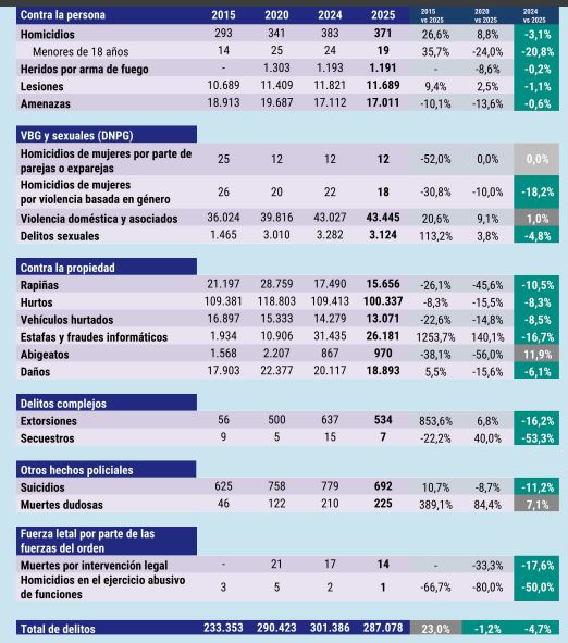 El documento, de unas 150 páginas, amplía significativamente el alcance de las estadísticas criminales, pasando de cinco indicadores tradicionales a un sistema de 20 variables que estructuran el análisis actual.