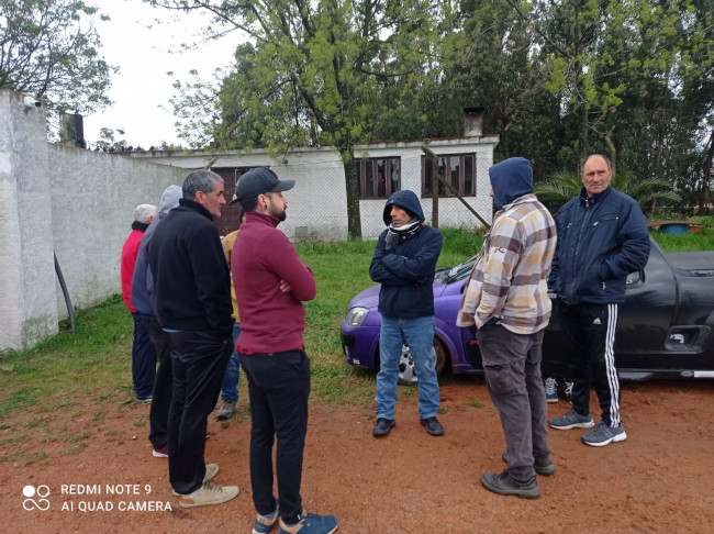 EMPALME OLMOS (Uypress)- Los trabajadores de la fábrica de ticholos de Radiccioni quedaron desamparados, sin que nadie les responda y defienden sus derchos parados en la puerta de la planta porque vinieron camiones a retirar material.