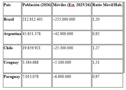 Uruguay mantiene una de las tasas más altas de penetración de líneas móviles de América Latina. Si medimos "cantidad de líneas por habitante", el país efectivamente tiene bastante más de un celular (línea) por habitante, lo cual es un indicador de la alta digitalización y acceso a la conectividad en el país.