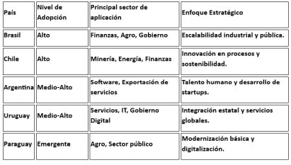 En 2025/2026, la Inteligencia Artificial (IA) ha dejado de ser una tecnología experimental en América Latina para convertirse en una herramienta de eficiencia operativa. Su adopción en Uruguay, Chile, Argentina, Brasil y Paraguay se diferencia principalmente por la madurez de su ecosistema digital y su enfoque (estatal frente a privado).