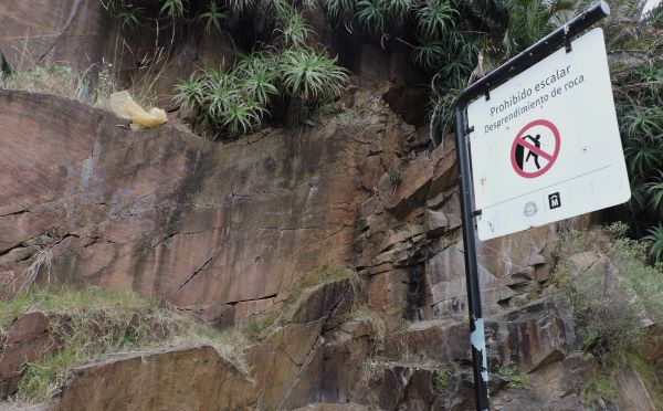 Pero es así. Un día sí y otro también, veo gente escalando la "montaña prohibida". Hasta ahora nunca he sido testigo de algún desprendimiento de roca, pero si el aviso está, asumo que el riesgo existe, y me pregunto -un día sí y otro también- por qué hay gente que, además de la excitación del escalamiento se somete a un riesgo avisado. Capaz que es parte de la vida; tal vez sea eso que decíamos más arriba de que la prohibición cumple también la función de llamar la atención sobre lo prohibido.
