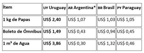 Estudio comparativo de precios en dólares de diversos productos. Esto elimina la distorsión de la inflación de cada país.