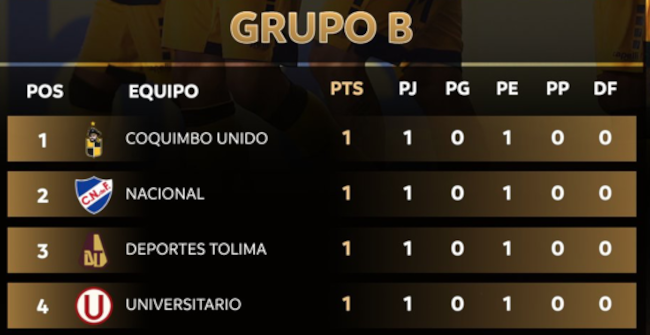 De esta forma, los cuatro equipos del equipo, sumando a Deportes Tolima y Universitario de Perú que también salieron 1-1, tienen un punto tras una fecha disputada.