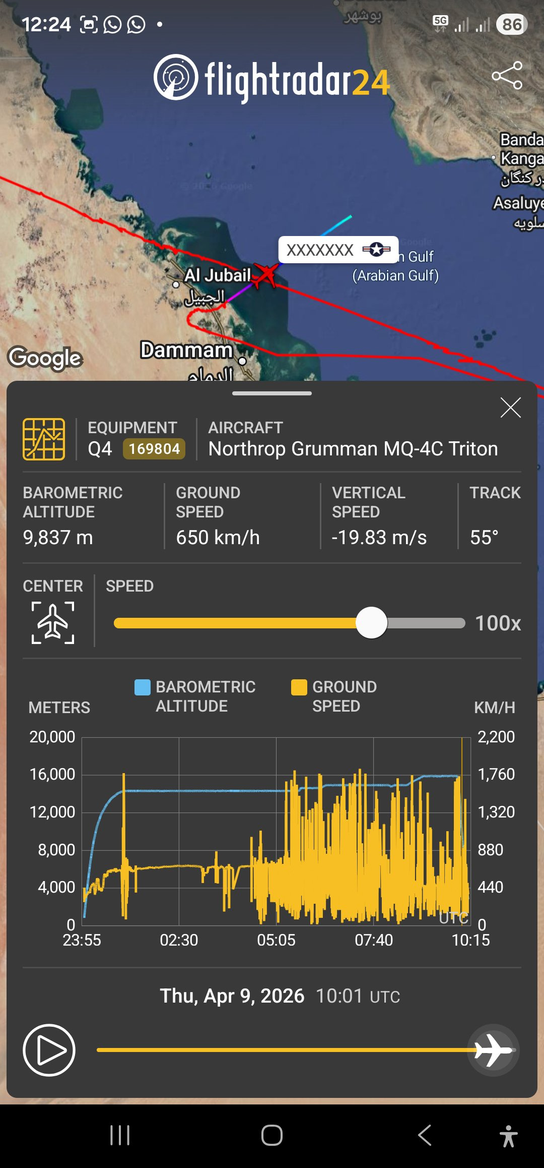 Los informes iniciales y los indicadores de navegación sugieren el posible accidente o derribo de un Northrop Grumman MQ-4C Triton, un avión de vigilancia no tripulado estratégico estadounidense, mientras operaba sobre aguas del Golfo Pérsico.