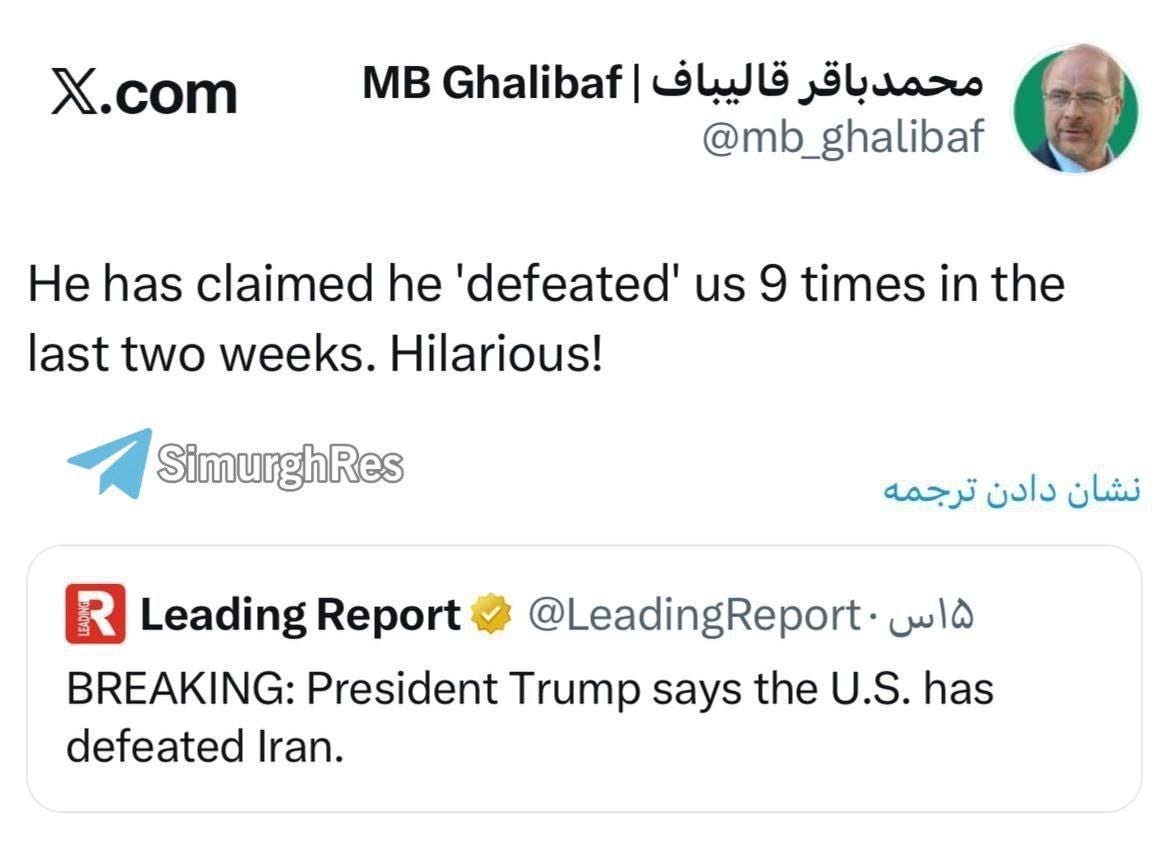 Resulta hilarante que, para compensar su ineptitud, Trump siga alardeando de haber "derrotado por completo" o "aniquilado" a Irán, mientras se muestra totalmente impotente ante el objetivo más importante de la región.Se ha convertido en una broma recurrente, y el presidente del Parlamento iraní, Mohammad Ghalibaf, se ha burlado de los últimos exabruptos de Trump.
