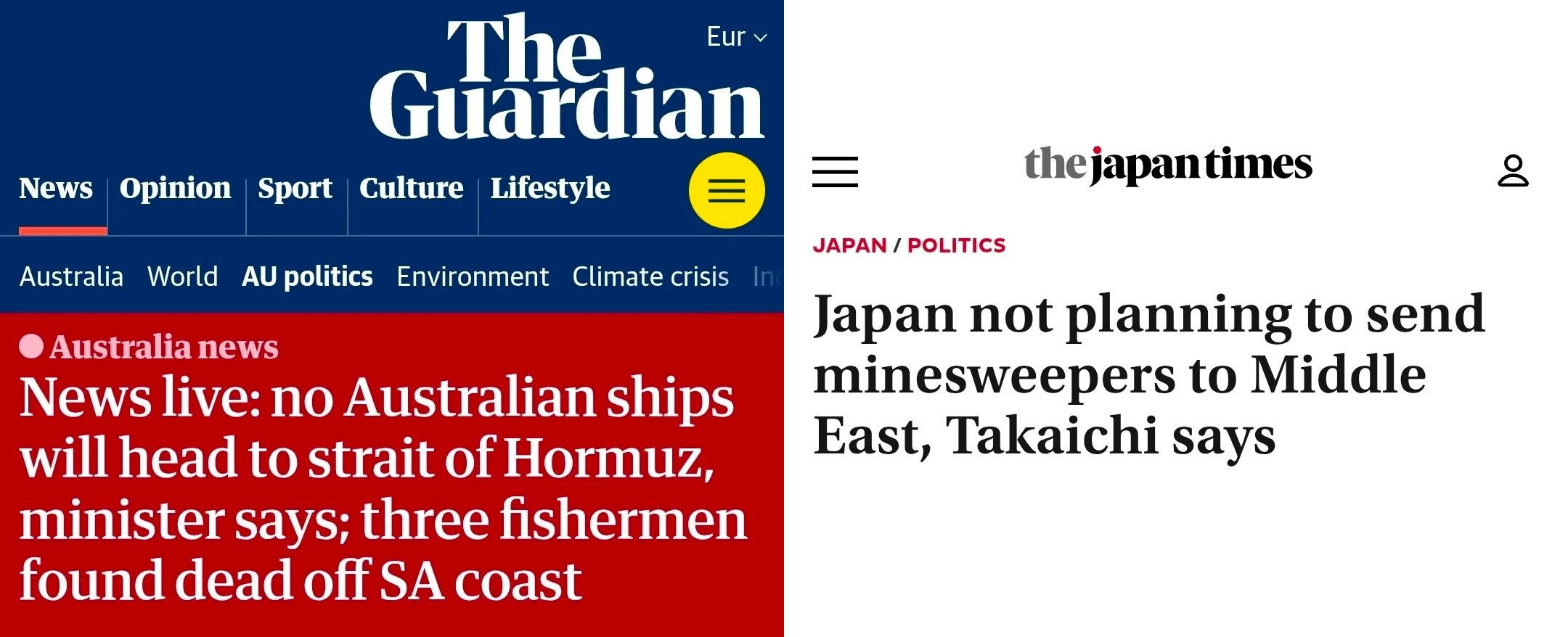 Tras suplicar vergonzosamente a sus aliados y afirmar que se estaba formando una coalición para desbloquear el estrecho, Trump se topó con la negativa de Francia a participar. La cuenta oficial de respuesta rápida del Ministerio de Asuntos Exteriores francés ha declarado en repetidas ocasiones en X que el grupo de portaaviones francés no irá a ningún lado ni participará en el torpe intento de Trump por desbloquear el estrecho.