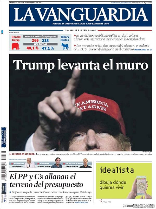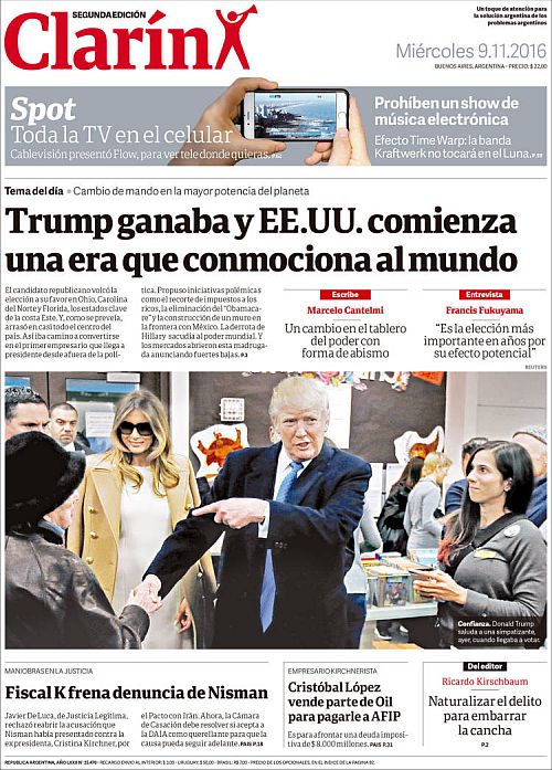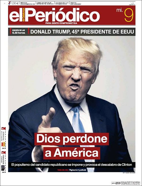 Diferentes diarios y medios de prensa internacionales se han expresado en la mañana posterior al triunfo del republicano Donald Trump en las elecciones presidenciales de Estados Unidos, tras imponerse a la demócrata Hillary Clinton.