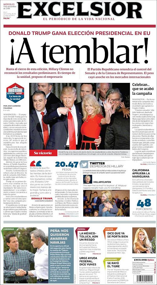 EE.UU. (Uypress) - Reconocidos diarios y medios de prensa del mundo han destacado en sus portadas mensajes de incertidumbre, temor y pesimismo tras el triunfo de Donald Trump como presidente de Estados Unidos.