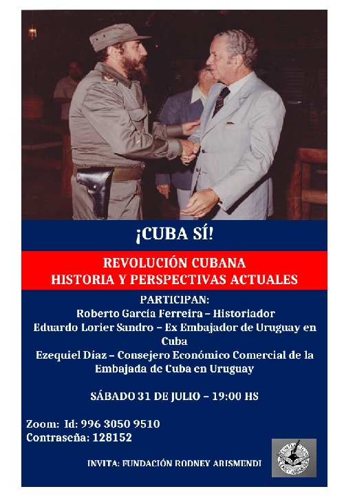 MONTEVIDEO (Uypress) - La Fundaciòn Rodey Arismendi invita a unirse a la conferencia '¡Cuba Sí! Revoluciòn Cubana. Historias y perspectivas actuales'. Participan tres destacados panelistas. La actividad es el próximo sábado 31 de julio a las 19 horas.
