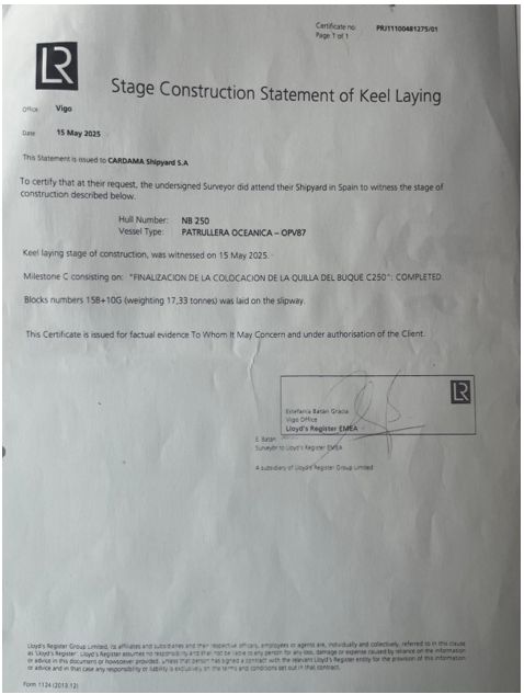 En el espacio que descargó la lejana apariencia de una quilla, ocupa una parte de la primera patrulla oceánica, así que no existe la mínima posibilidad que se construya ni la primera ni la segunda OPVs. Es simplemente otro capítulo del fraude.