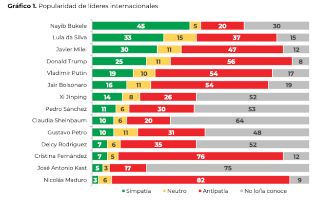MONTEVIDEO (Uypress)- El presidente de El Salvador, Nayib Bukele, es el líder internacional que genera mayor simpatía entre los uruguayos, según una encuesta de la consultora Equipos que midió la popularidad de distintos líderes, como Bukele, Lula Da Silva, Javier Milei, Donald Trump, Vladimir Putin, entre varios otros, presentada en Subrayado (canal 10).