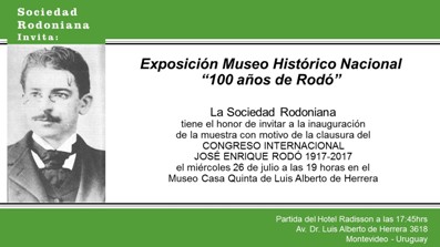 Y el miércoles a las 19 horas el Museo Histórico Nacional inaugurará en la Casa Quinta de Luis Alberto de Herrera la muestra "100 años de Rodó".
