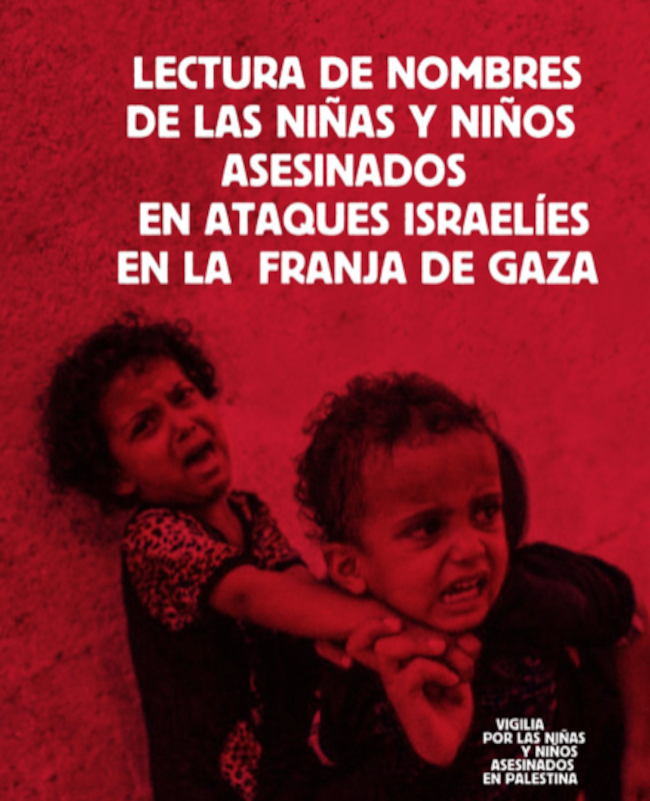 Convocan a vigilia en Plaza Cagancha por más de 20 mil niñas y niños asesinados en Gaza