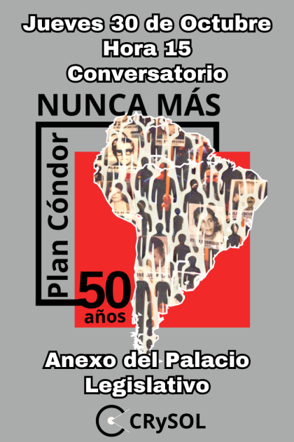 MONTEVIDEO (Uypress) – El colectivo de ex presas y ex presos políticos Crysol ha convocado a una instancia de reflexión al cumplirse 50 años de la puesta en marcha del Plan Cóndor. Será este jueves 30 de octubre en el Palacio Legislativo.