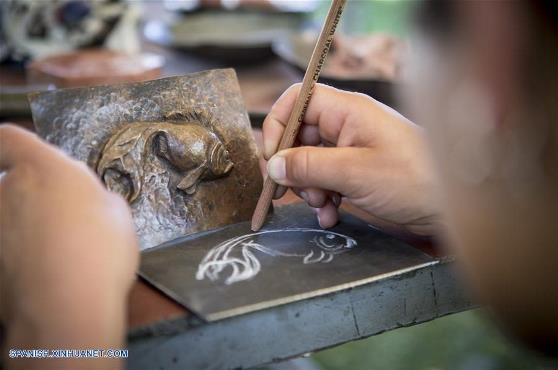Un artesano pone al fuego una pieza. (Xinhua/Martín Zabala)