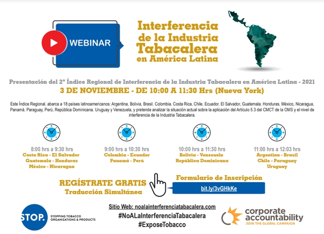 Seminario Virtual para el lanzamiento del 2º Índice Regional de Interferencia de la Industria Tabacalera en AL